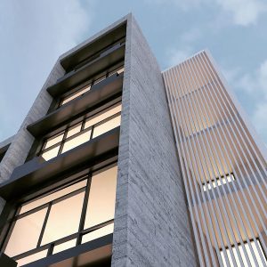 يتكون المبنى من 21 شقة، 7 طوابق، 3 أحجام مختلفة كل طابق.